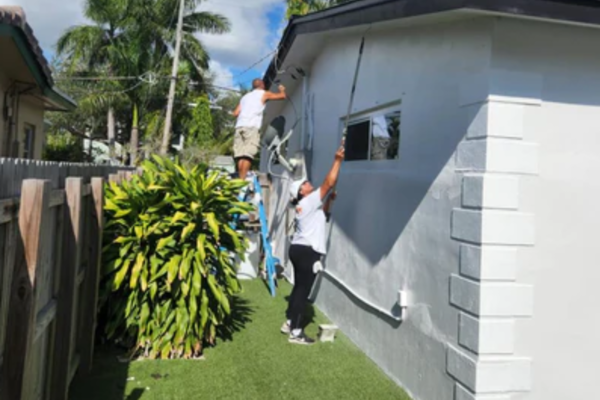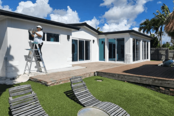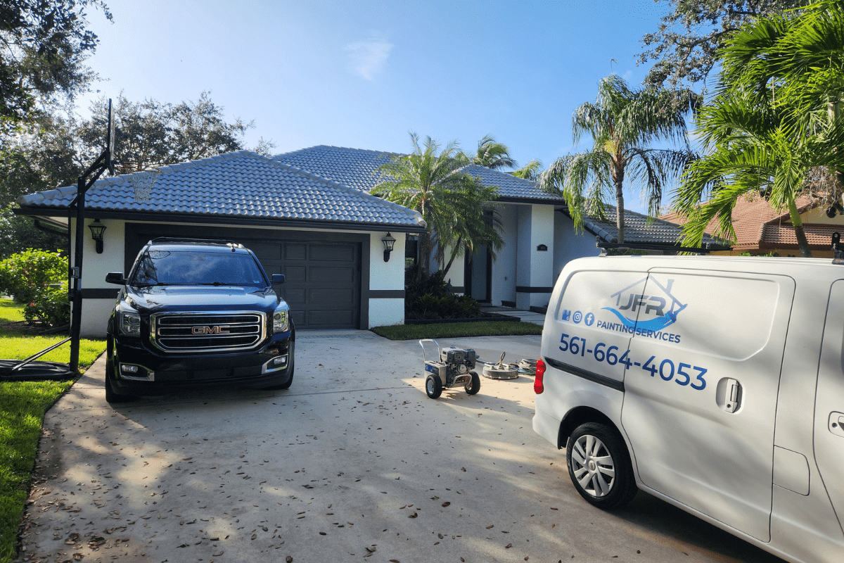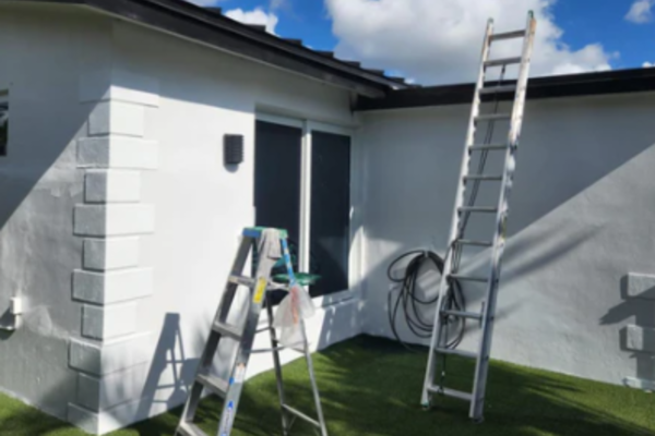 with pressure clean process before to apply sealer and paint, which gives the place long-lasting painting